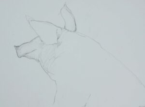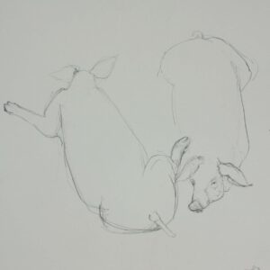 Schweinchen, Tuschzwichnung