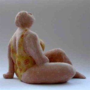 Badende, sitzend, von der Seite betrachtet, Keramik gegossen und glasiert, 2004, H= 16 cm - in anderen Farben noch zu kaufen, Preis: 190.- €